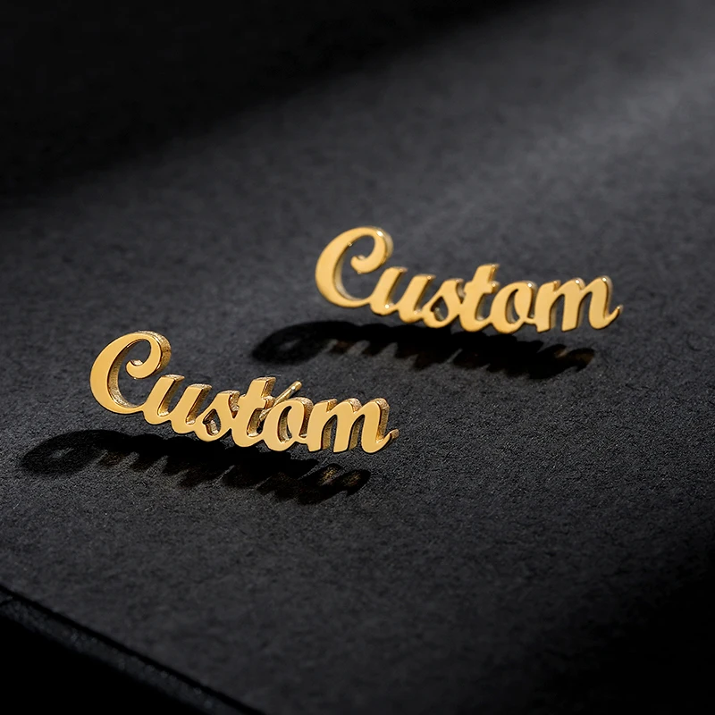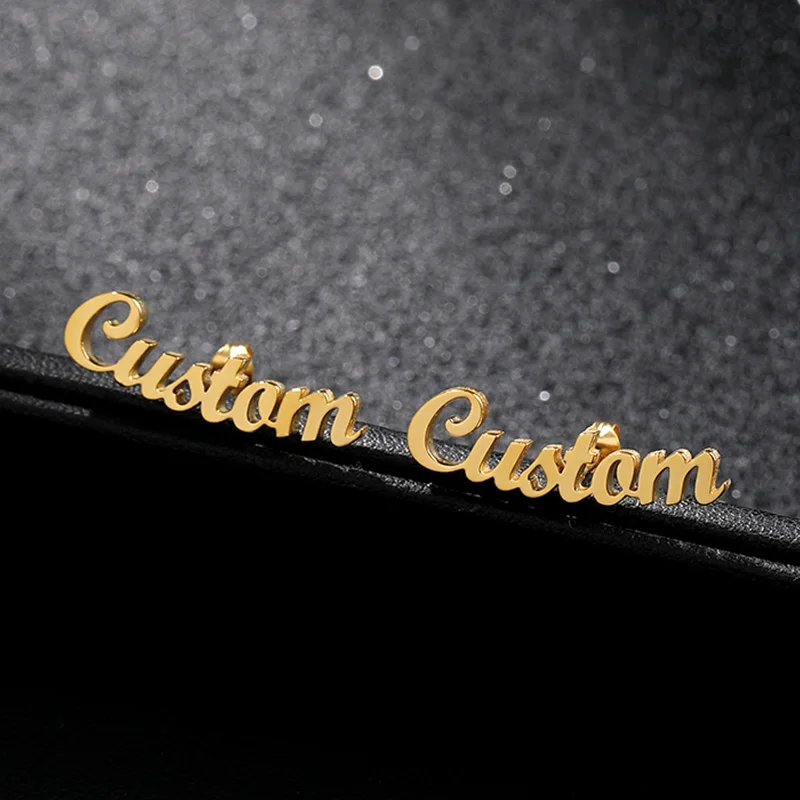 Stainless Steel Gold Stud Earrings Aretes De Mujer Custom Name Pers...