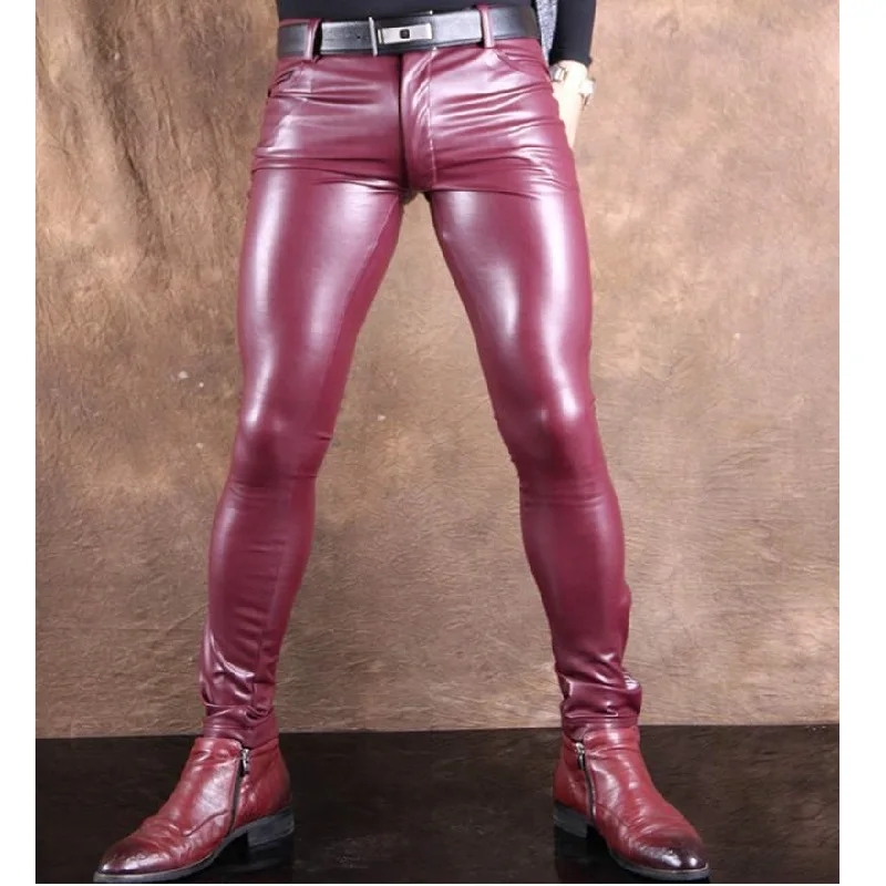 Сексуальные мужские матовые узкие брюки из искусственной кожи, модн...