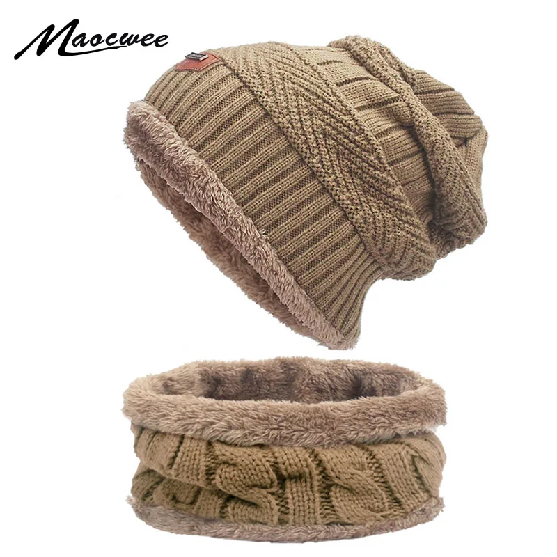 Зимние шапочки, шапочки, шапка, шарф, комплект для мужчин и женщин, хлопковая вязаная теплая Толстая шапка с подкладкой, шапки, кольцо, шарф, комплект