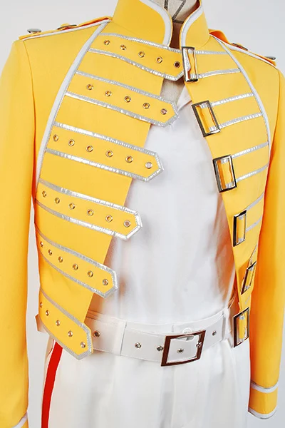 Вокал Queen Lead Freddie Mercury wэмблей на сцене для мужчин и женщин Косплей желтый пиджак белые брюки костюм полный комплект Хэллоуин