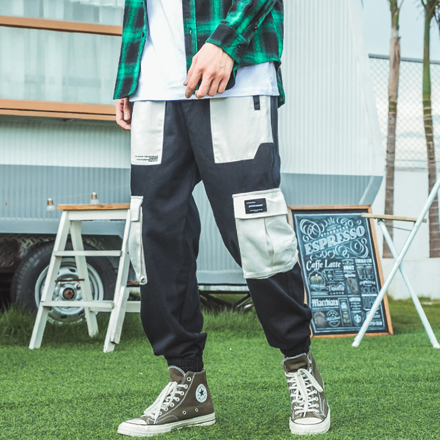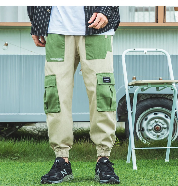 Брюки-карго мужские с множеством карманов, модные штаны в стиле пэчворк, уличная одежда, повседневные тренировочные штаны в стиле хип-хоп, Джоггеры в стиле Харадзюку