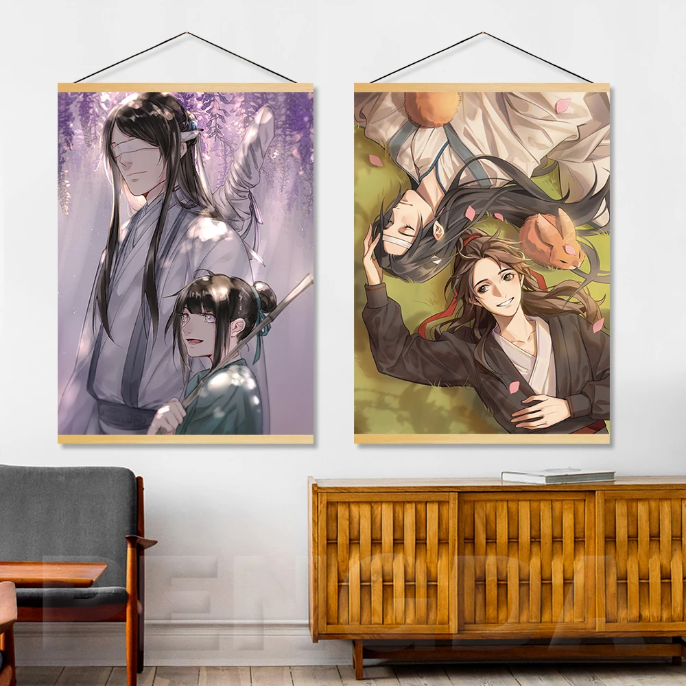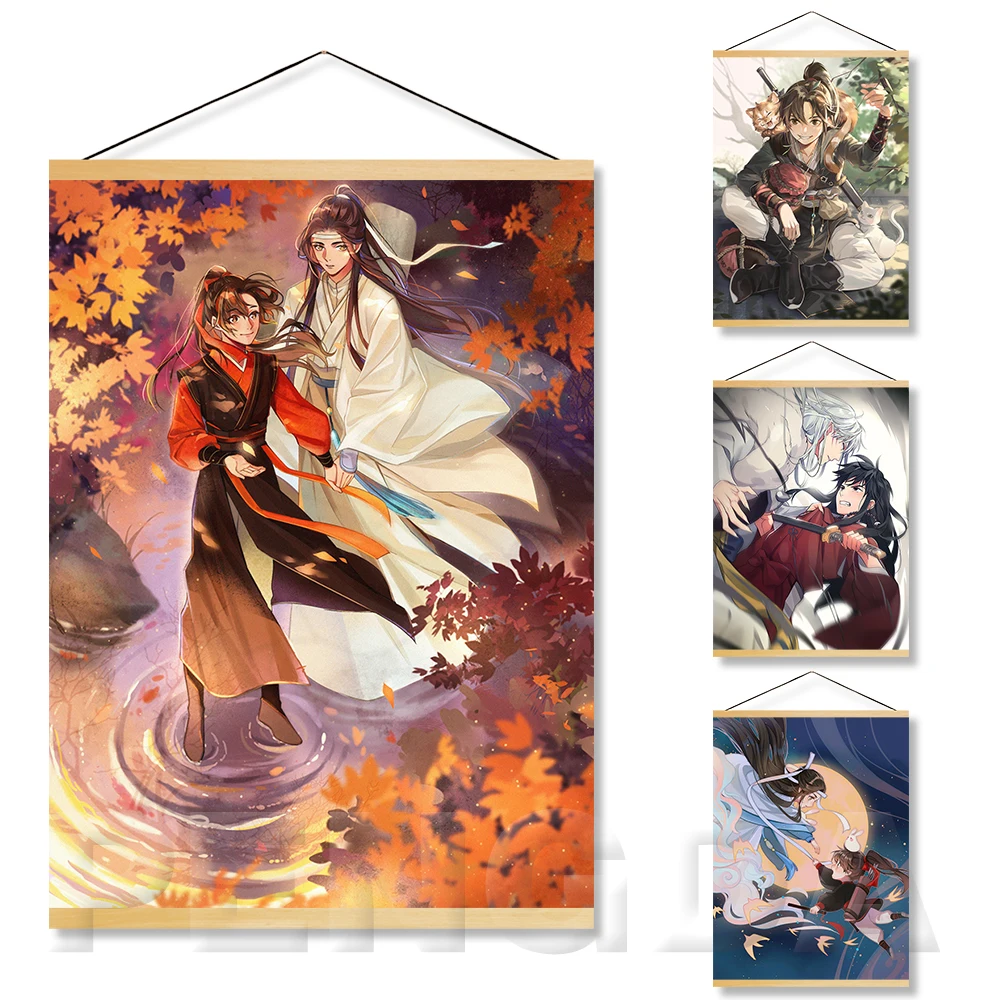 Печать на холсте постер из массива дерева подвесной свиток домашний...