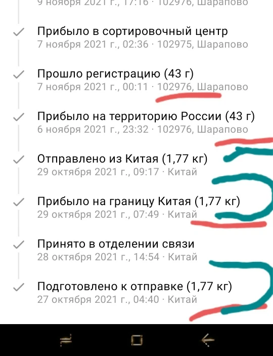 посылка была объединенной с другими заказами через почту России на 1,770 кг (почти 2 кг). там посылка распалась на 2 части. первая часть пришла - 43 грамма!!!. письменно и через интернет мне пришлось написать много жалоб, что у почты России воровство. через 3 дня после вручения 43 граммов, мне позвонили и сказали, что нашли остальную часть посылки и что я могу просто так(без трек номера) подойти и забрать оставшуюся часть посылки. вот такая доставка "вместе быстрее". на почте мне изначально сказали, что они не будут искать и отслеживать такие посылки, так как они были отправлены простым отправлением. простые отправления они не розыскивают. такая вот история. мне повезло, но могли бы и не найти.