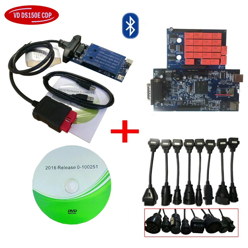 Диагностический прибор obd, с bluetooth, 8 кабелями для автомобилей и грузовиков