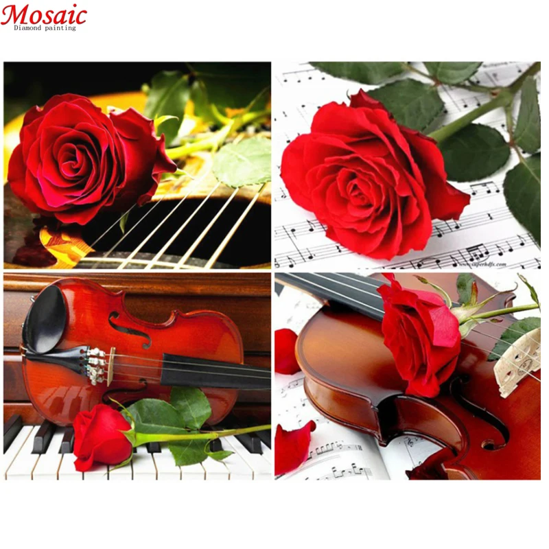 Алмазная картина Цветочная Роза, музыкальный инструмент, пианино, скрипка, квадратная Круглая Полная Алмазная 5D мозаика для творчества, вышивка крестиком kgift
