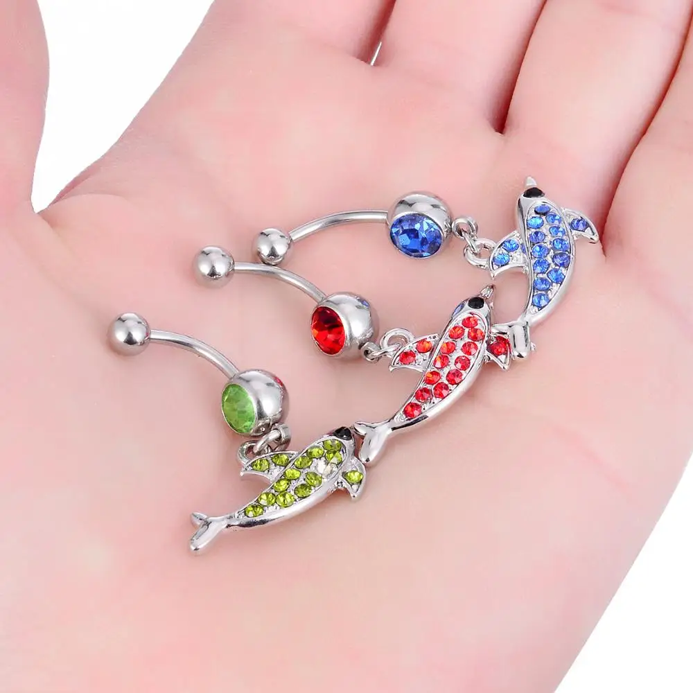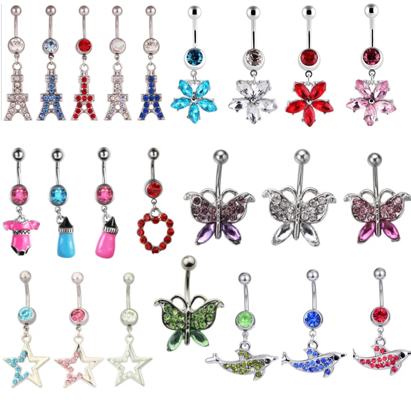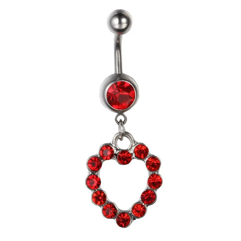 Кольцо для пупка, из нержавеющей стали, с кристаллами, в форме сердца