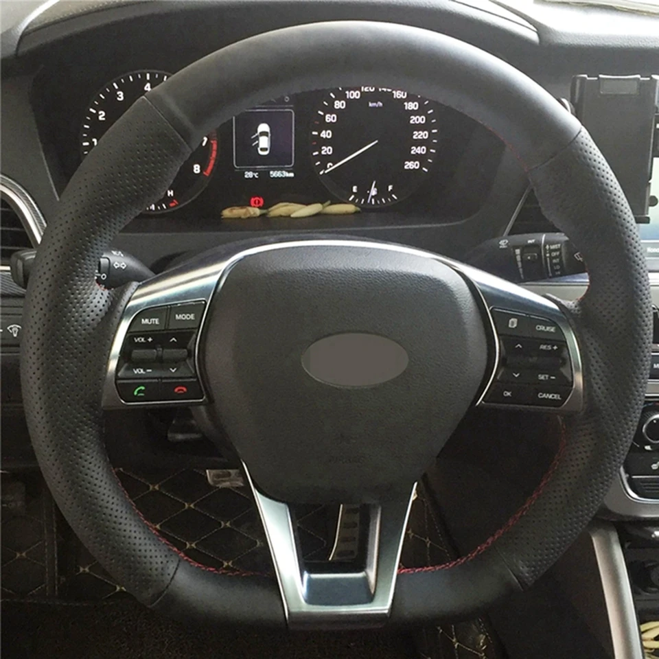 Черная искусственная кожа DIY ручной работы чехол рулевого колеса автомобиля для Hyundai Sonata 9 2015 2016 2017 (3-спица)