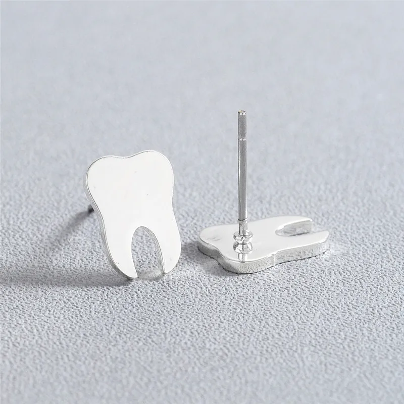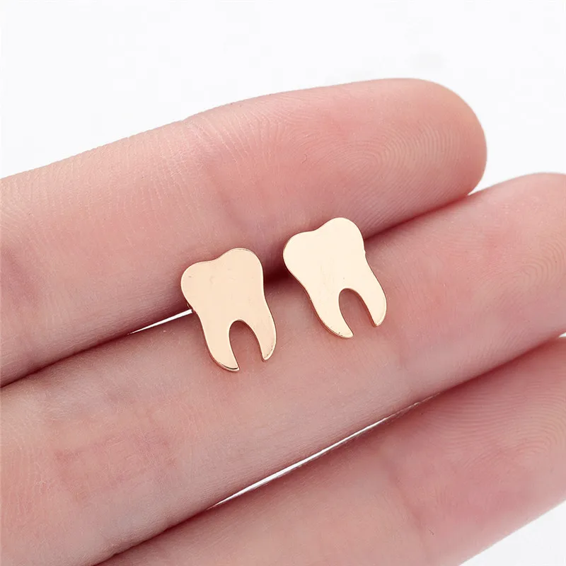 Kinitial, серьги из нержавеющей стали с зубами для женщин, милые серьги-гвоздики, лучший подарок для врача для девочки, модные серьги-гвоздики