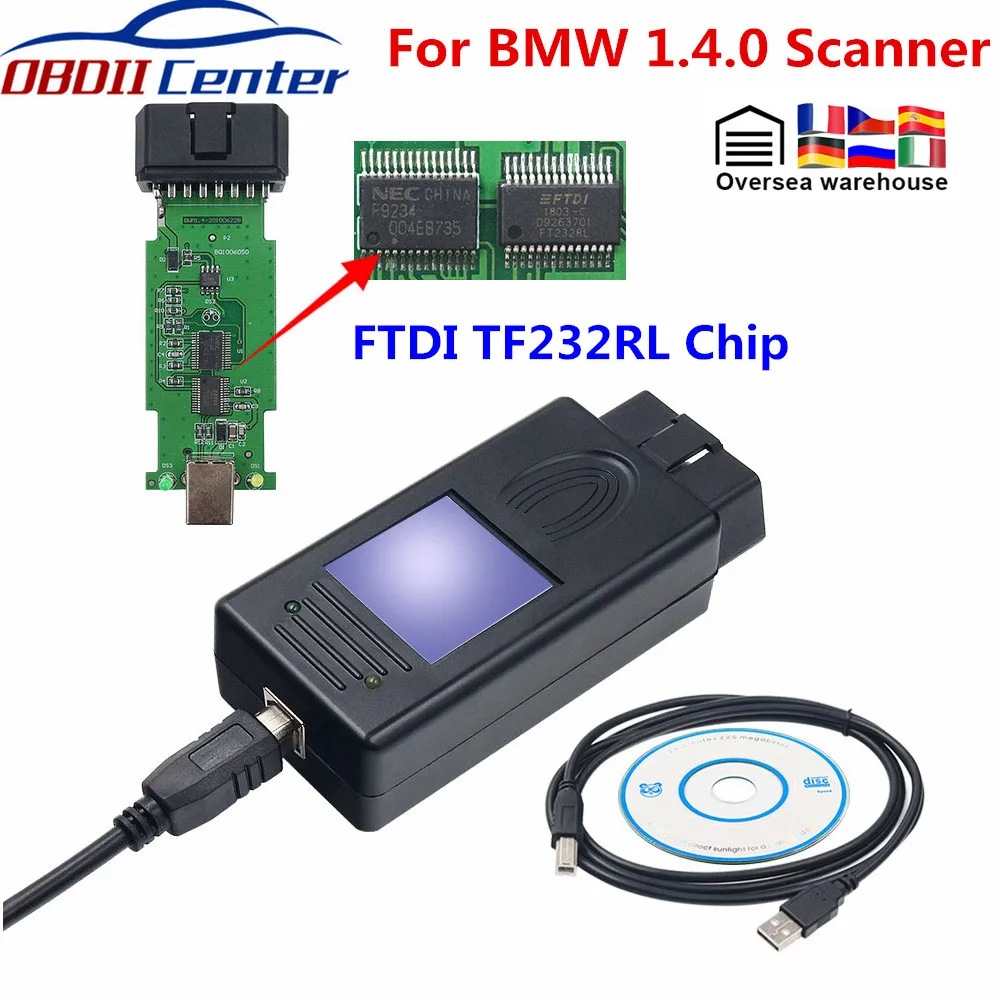 Диагностический сканер OBDII для BMW 2021, 1,4 дюйма, USB