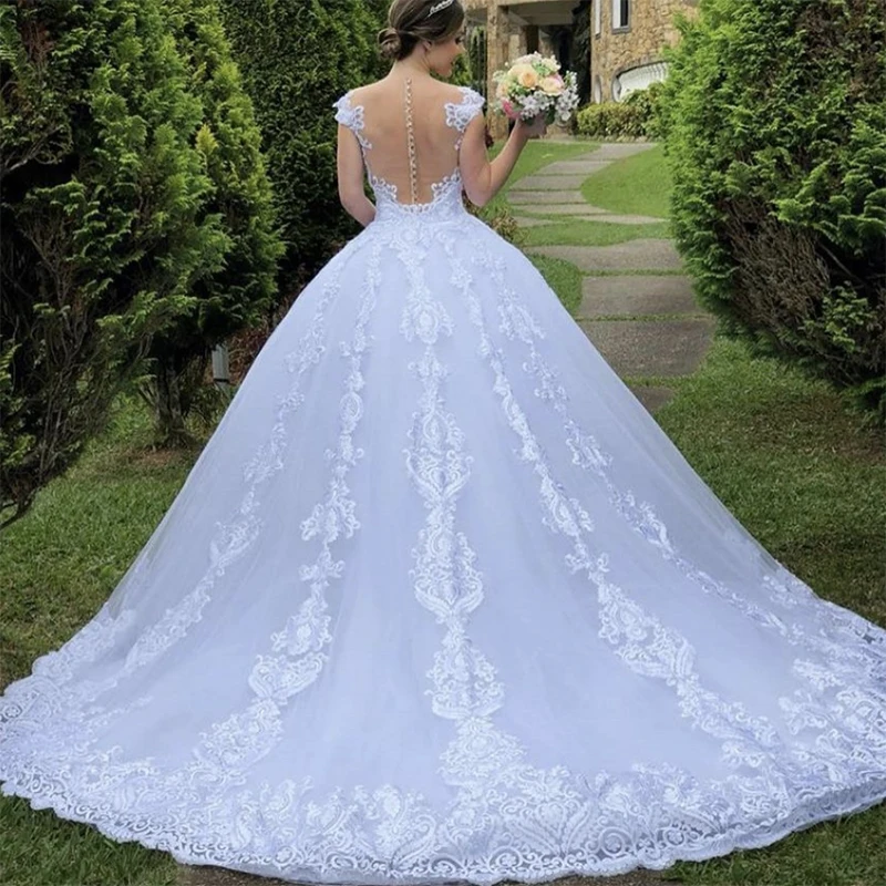 Свадебное платье, роскошное сексуальное бальное платье принцессы с v-образным вырезом, классическое кружевное свадебное платье невесты