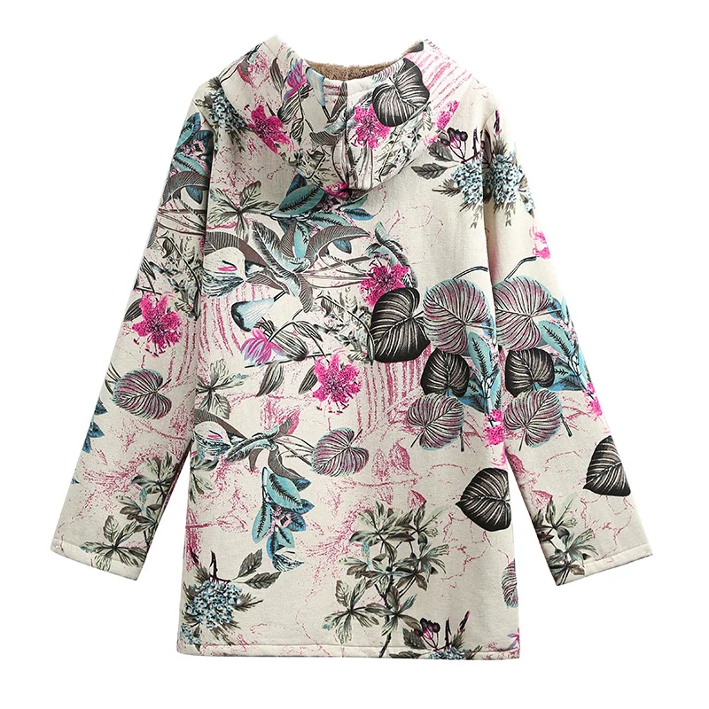 5XL размера плюс женская куртка-пальто из искусственного меха, парка с капюшоном, длинная куртка с капюшоном, Цветочный принт с боковыми карманами, Теплые ботильоны, винтажные длинные пальто с искусственным мехом с Туника Топы