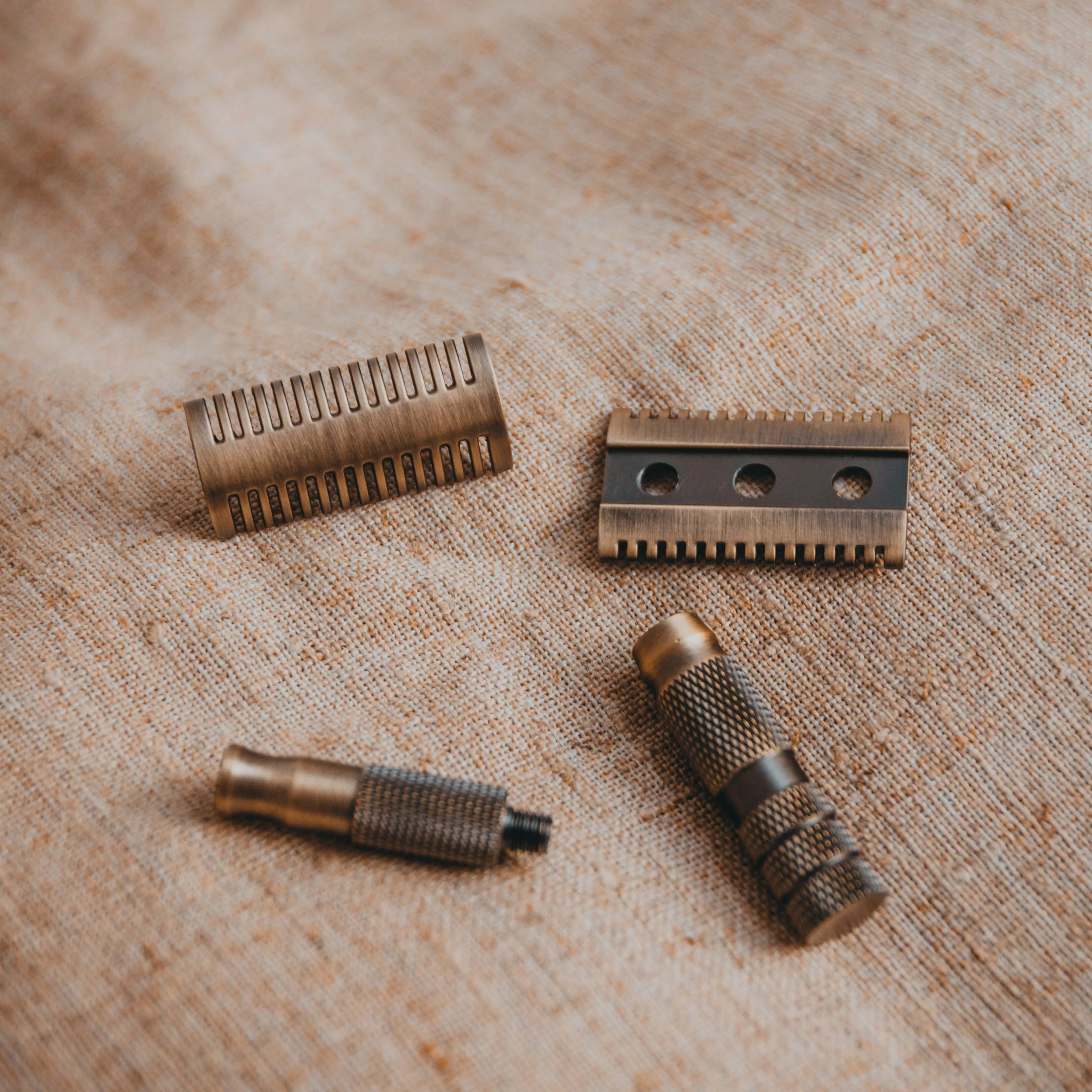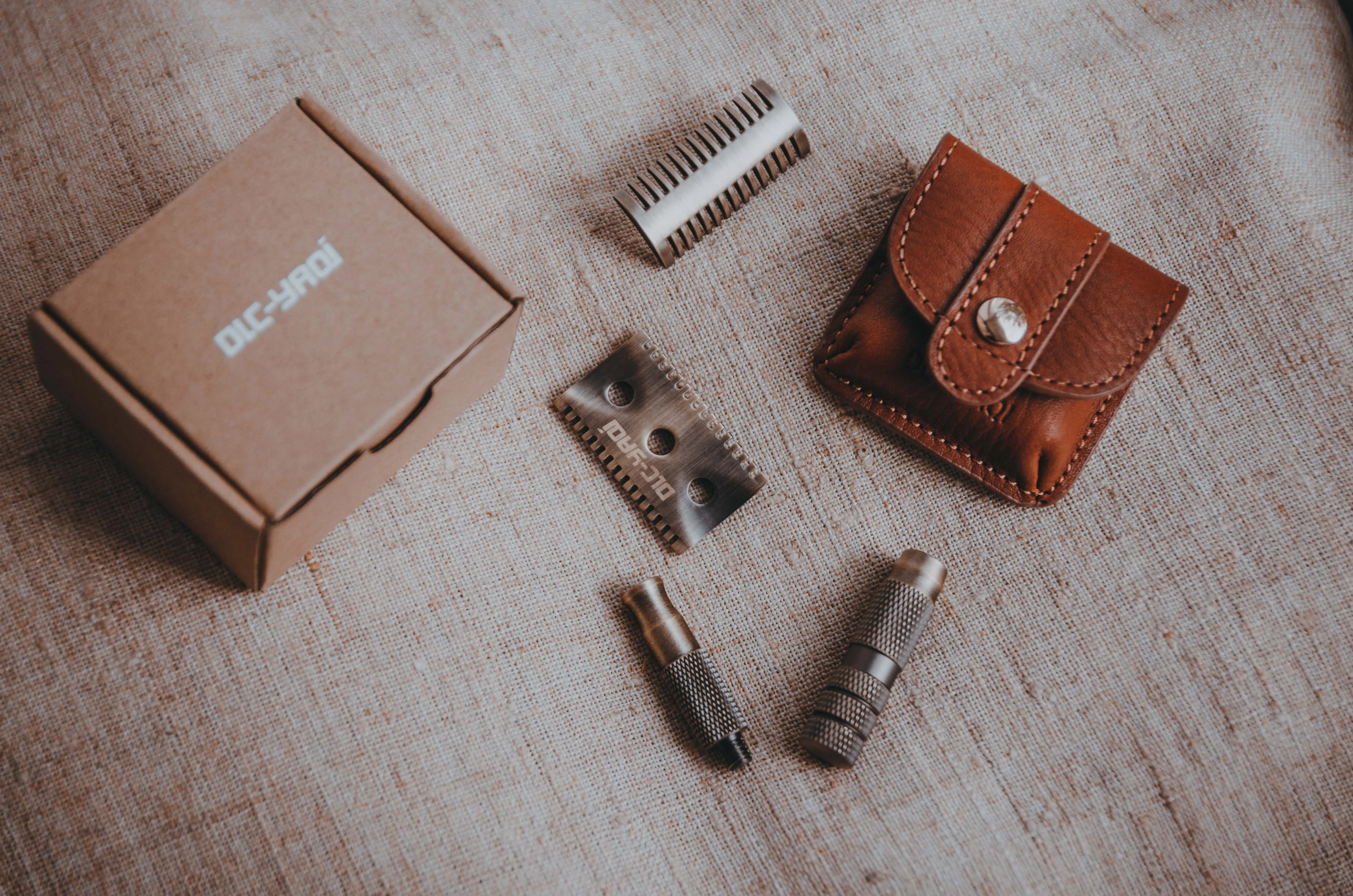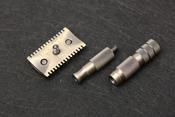 Бритва увесистая, выполнена качественно и гладко. Приехала хорошо упакованной, в красивой коробочке. Бритва лежала в разобранном виде, в чехле из натуральной кожи. Чехол удобный, кожа мягкая, кнопка держится крепко, застёгивается удобно. Сама бритва состоит из четырёх частей. Собирается быстро, все части легко закручиваются. Бреет качественно и чисто. Бритьё мягкое, порезаться ей очень сложно. На головке имеется двухсторонняя расчёска, она смягчает бритьё. Волосы из бритвы вымываются легко, не застревают. Лезвия в комплект не входят.