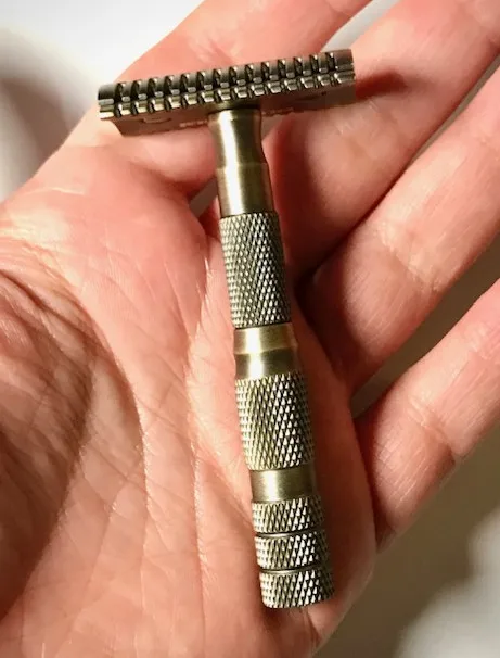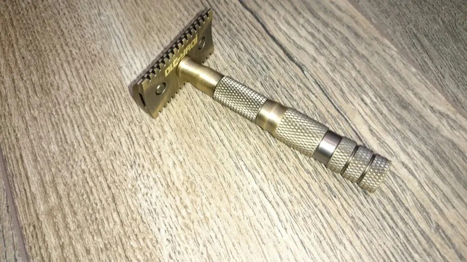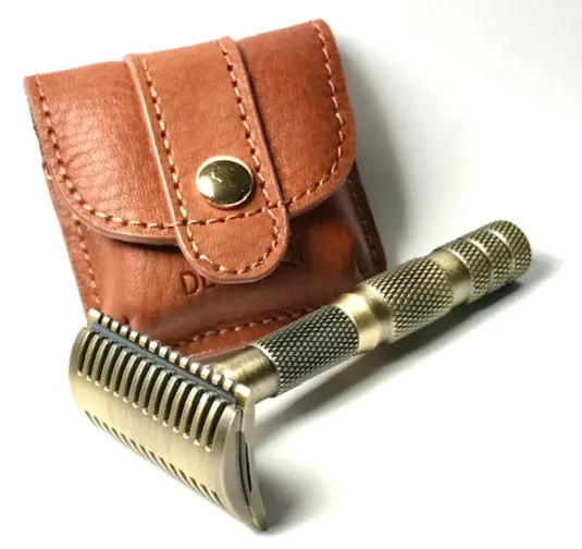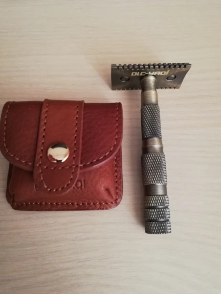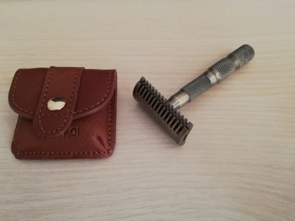 конечно бритвой ещё не пользовался, но впечатление от того как она преподносит себя просто прекрасно. аккуратный кожаный чехольчик, а в нем уложена бритва. цвет фантастический, не просто надоевший хром, а состаренная латунь или медь. думаю как подарок это очень интересная вещь, особенно для себя