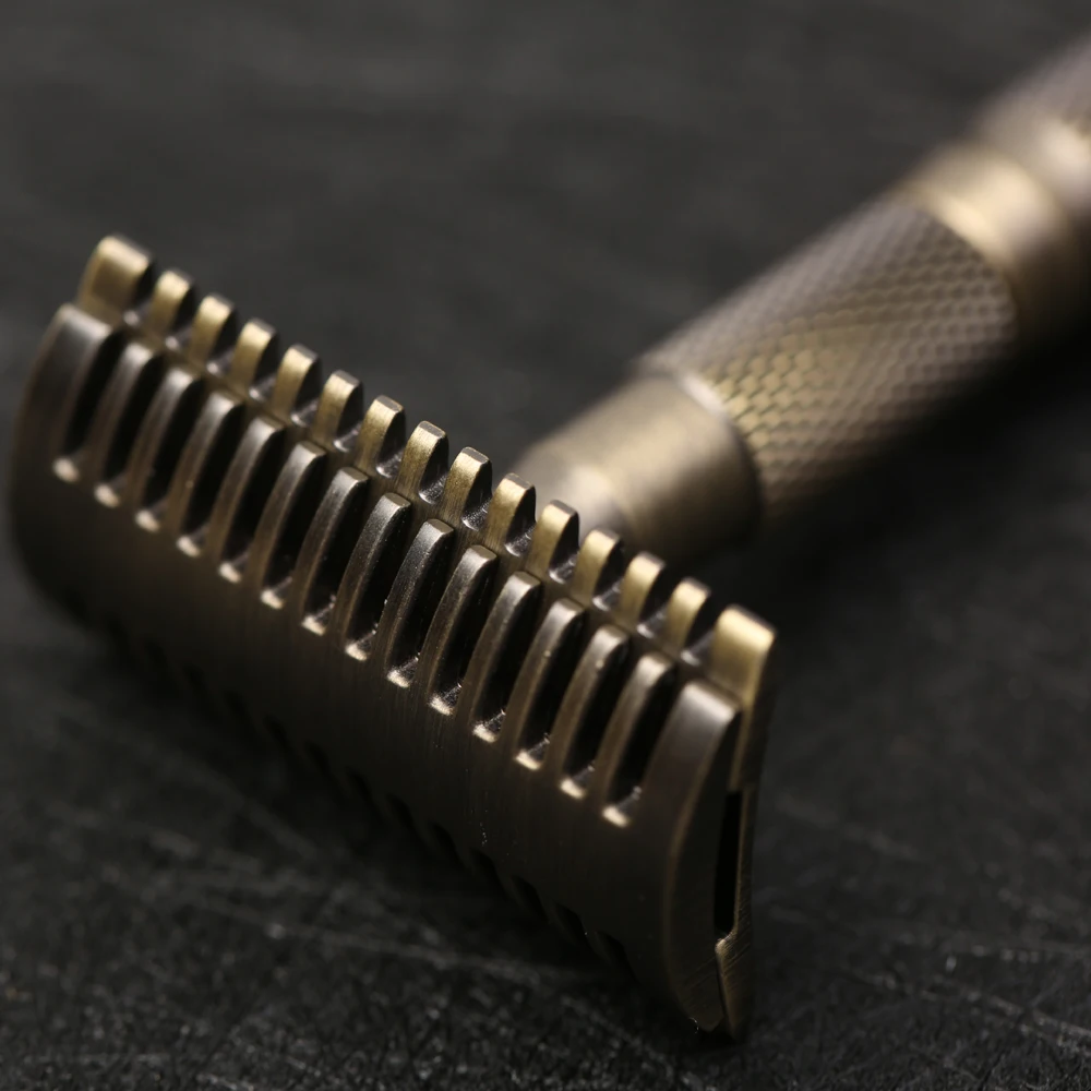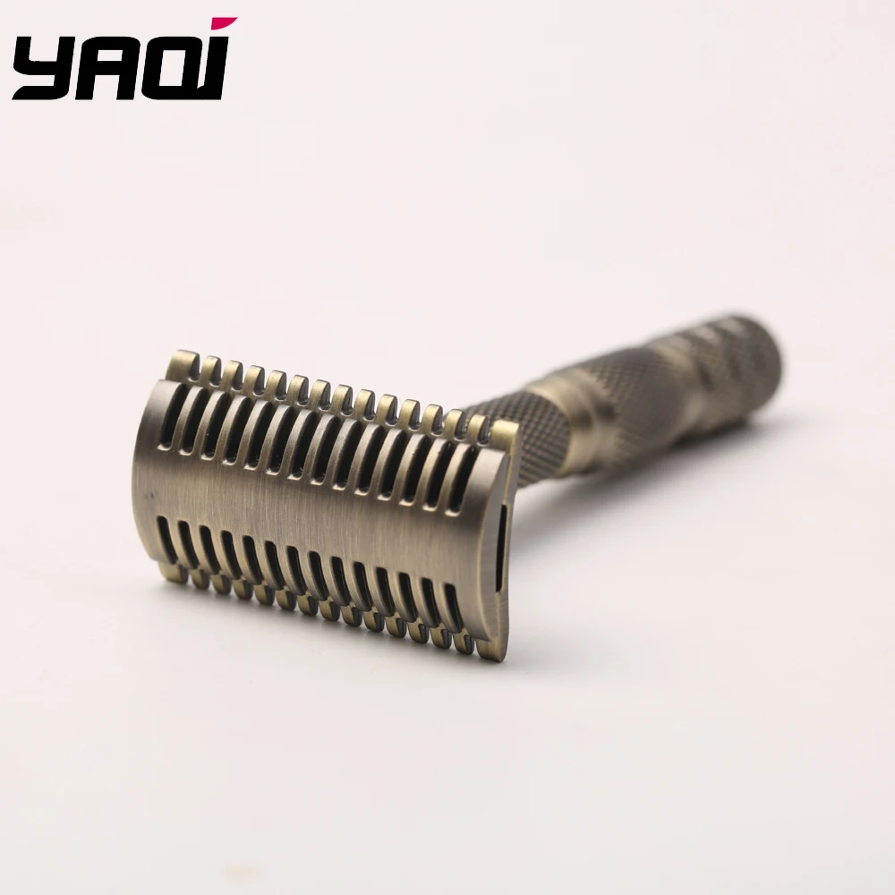 Бритва для бритья Yaqi, с покрытием из латуни, с кожаным чехлом, для путешествий