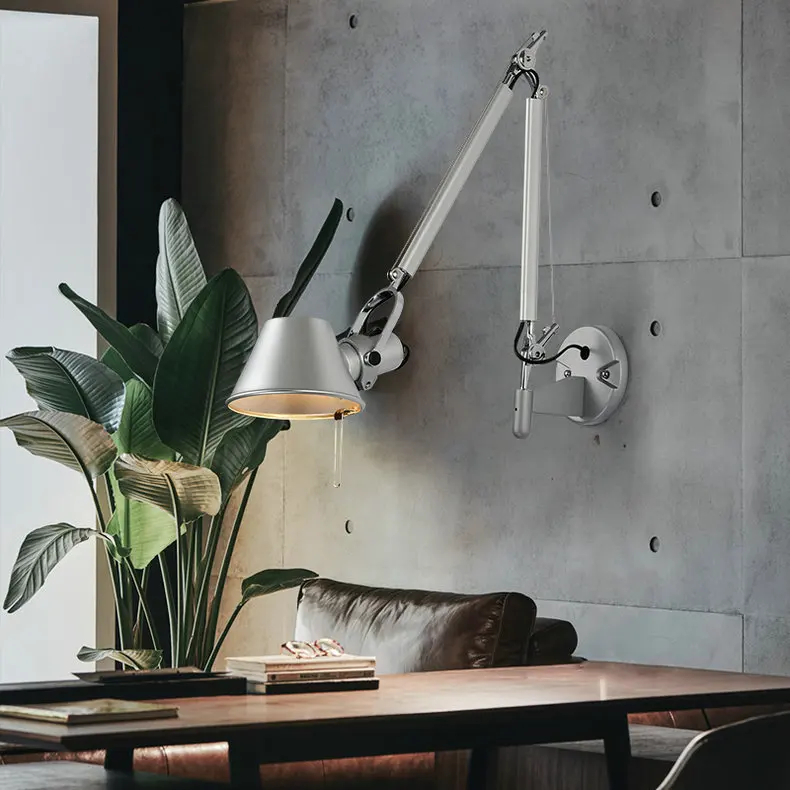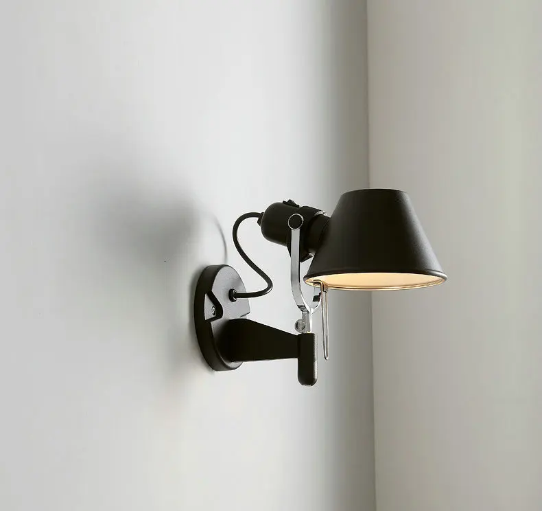 Серебристо-черный промышленный настенный светильник переменного тока 110-220 В, прикроватный светильник для спальни, гостиной, коридора, регулируемая длинная рука E27, настенный светильник, светодиодный Декор