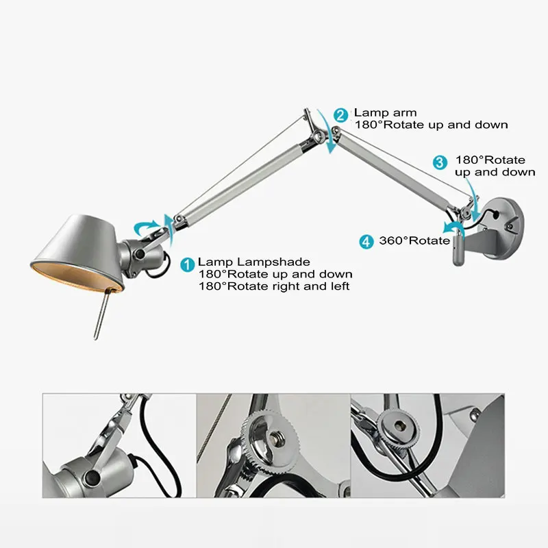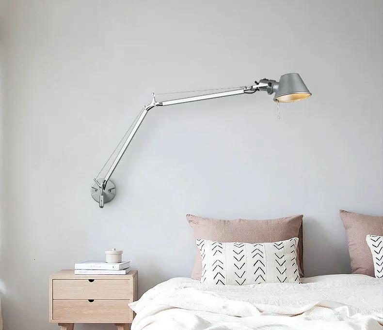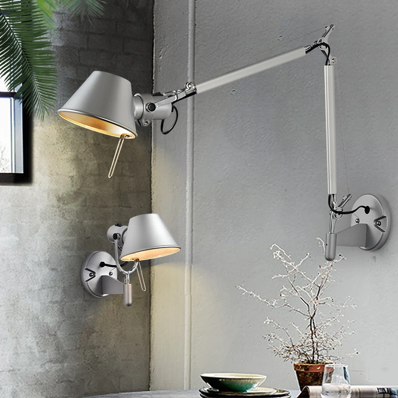 Серебристо-черный Регулируемый настенная лампа с длинным кронштейном AC 110V-220V спальня прикроватная гостиная коридор E27 настенный светильник светодиодный Декор