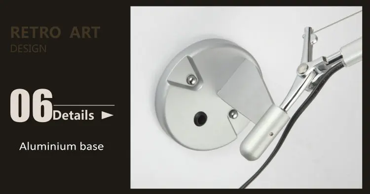 Особенности:Кнопочный переключатель на абажуре, легко включается/выключаетсяНастольная лампа для бизнеса с винтовым основанием размером E27/E26,Гибкость: настенный светильник оснащен гибким рычагом и вращающейся головкой, его можно отрегулировать по желаемой высотеЭнергоэффективность и декор: современная лампа подходит для любого дома, офисного декора, хорошего партнера или офисных принадлежностей для чтения, работы, учебы, освещения в офисе, дома, студии, общежитии колледжаСпецификация:Материал: алюминий, сплавНапряжение: 90-260 В переменного токаЦвет: серебристый, черныйЦоколь лампы: E27/E26 (лампочка в комплект не входит)Процесс: Гальваника,Материал: Он изготовлен из алюминия, сплава и имеет изысканную алюминиевую текстуру. Благодаря изысканному мастерству, распределению светильник и научной работе, это идеальное домашнее ремесло с идеальным сочетанием работы, учебы и украшения.Сфера применения: гостиная, спальня, кабинет, офис и т. д. около 5-20 квадратных метров