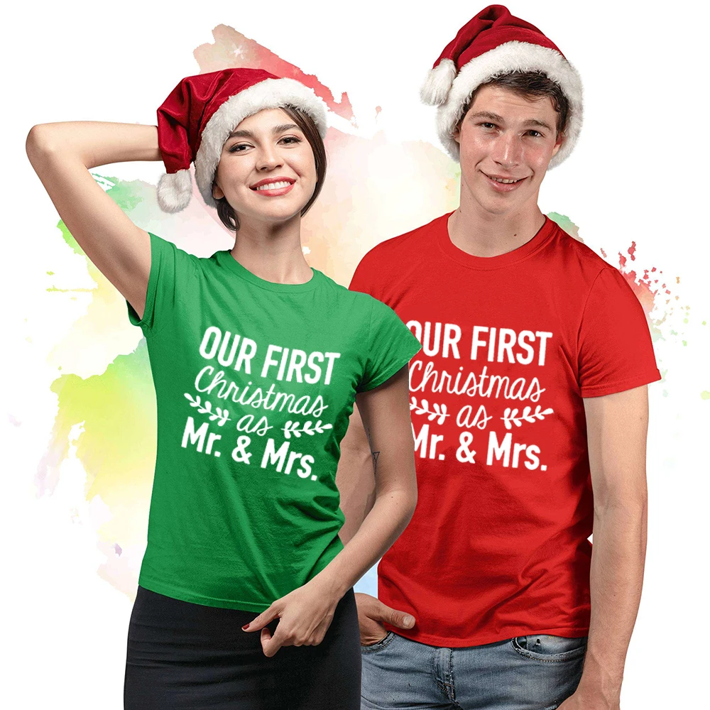 Новогодние майки Mr and Mrs, модные повседневные рождественские фут...