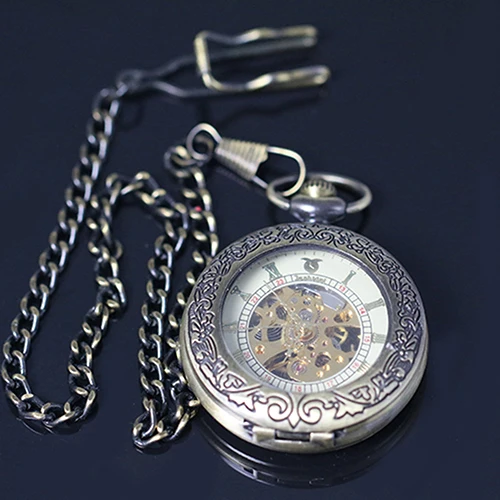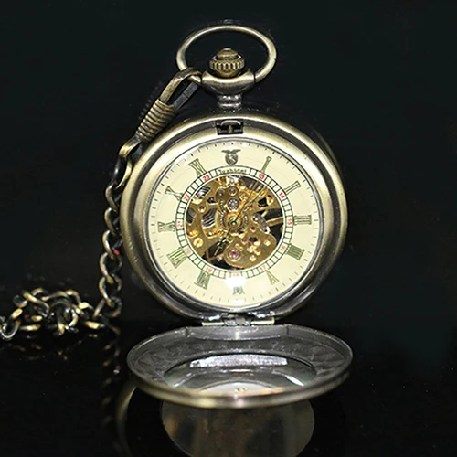 Часы унисекс с арабскими цифрами, винтажные бронзовые механические с карманами, подарок с римскими цифрами, кварцевый браслет с карманами