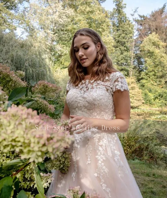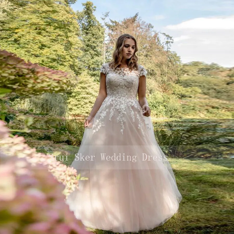 Свадебное платье из тюля, светильник круглым вырезом, с аппликациями