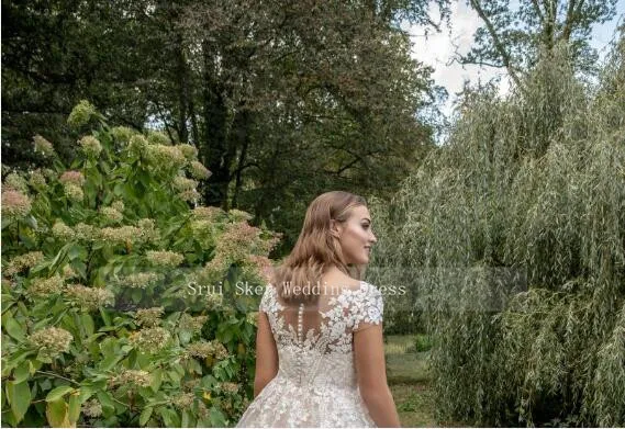2020 красивые иллюзионные Свадебные платья с круглым вырезом, Аппли...