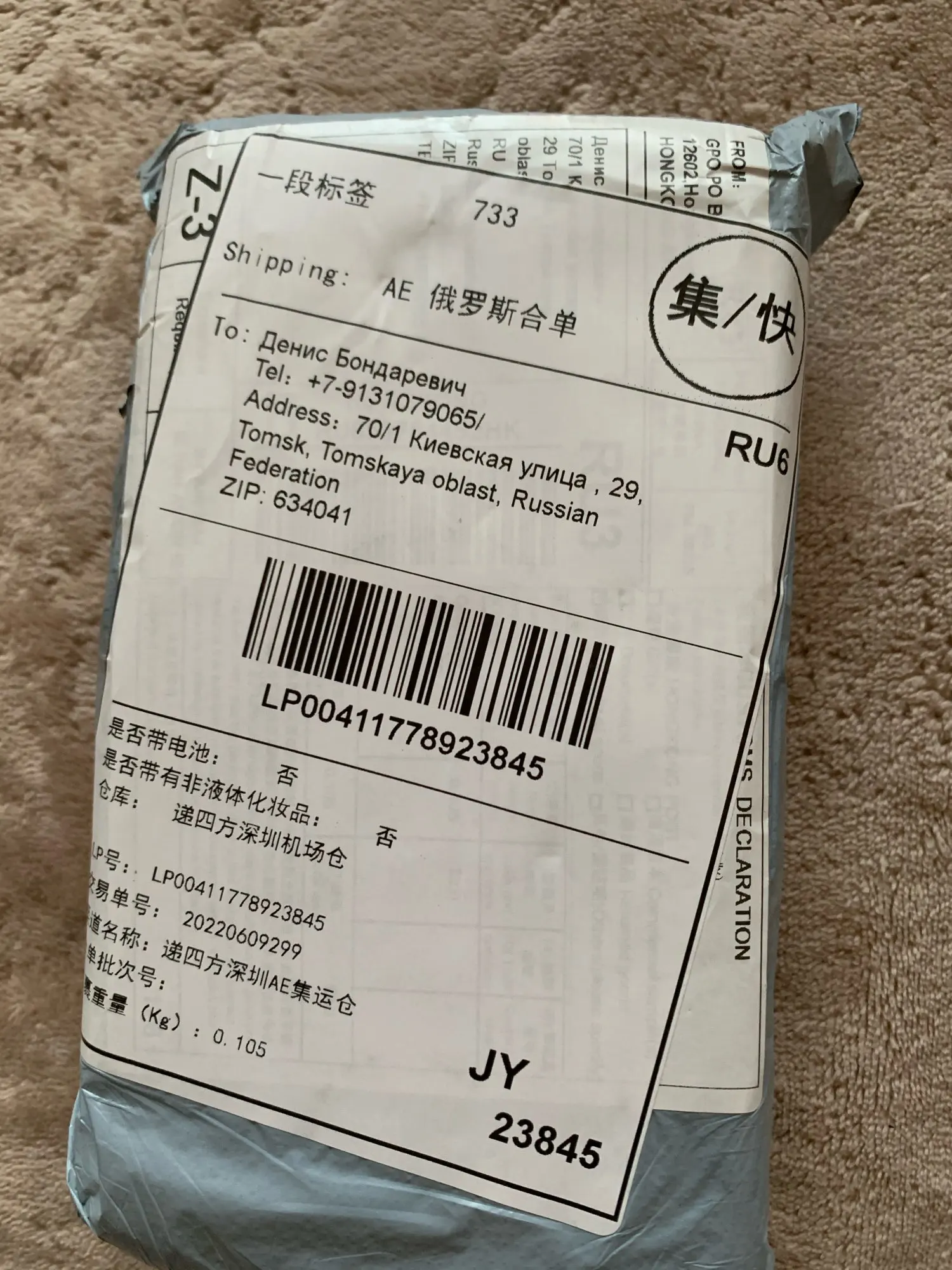 очень быстрая доставка до Москвы 11 дней.