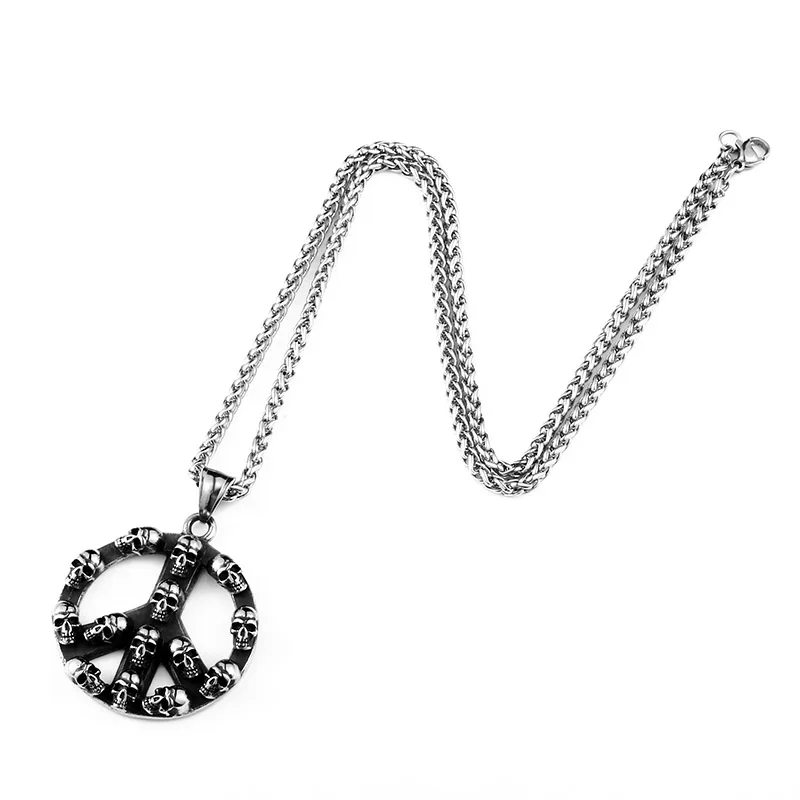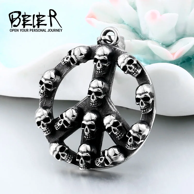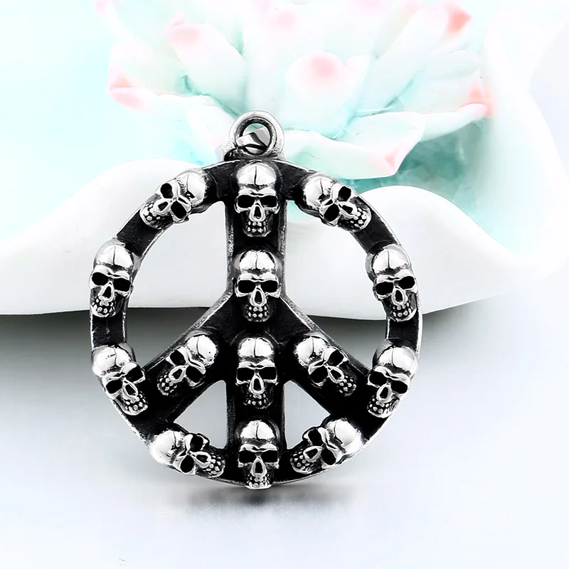 Байер в стиле панк в стиле Рок, хип-хопа из нержавеющей стали знак мира Байкер ожерелье с кулоном череп колье, ювелирные изделия для мужчин и женщин, LLBP8-340P