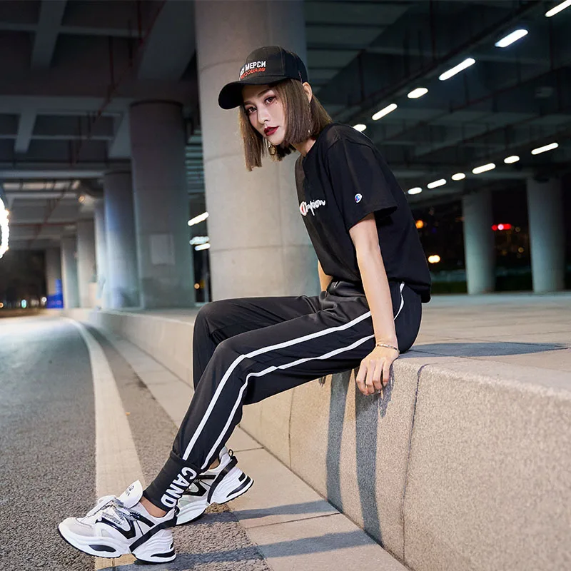 Женские брюки, женские повседневные полосатые брюки с боковыми полосками, лето 2019, женские свободные брюки для фитнеса в стиле хип-хоп