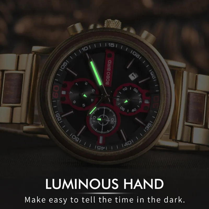 Мужские наручные часы BOBOBIRD, стильные деревянные наручные часы с хронографом, Рождественский подарок с логотипом ENGRAVER, с логотипом erkek kol saati, с логотипом на заказ, 2019