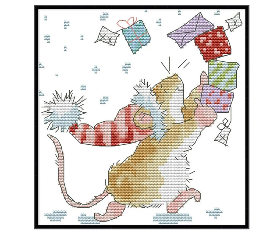 Милая маленькая мышь Joy Sunday, вышивка крестиком, Рождественские узоры 14CT 11CT, наборы для вышивки, Набор для вышивки крестиком