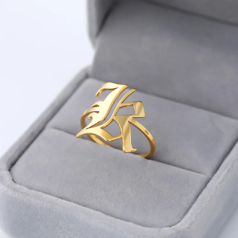 Женское кольцо, кольцо с инициалом буквы, Золотое кольцо из нержавеющей стали, старое кольцо с английскими буквами, мужской Рождественский подарок, кольцо для женщин