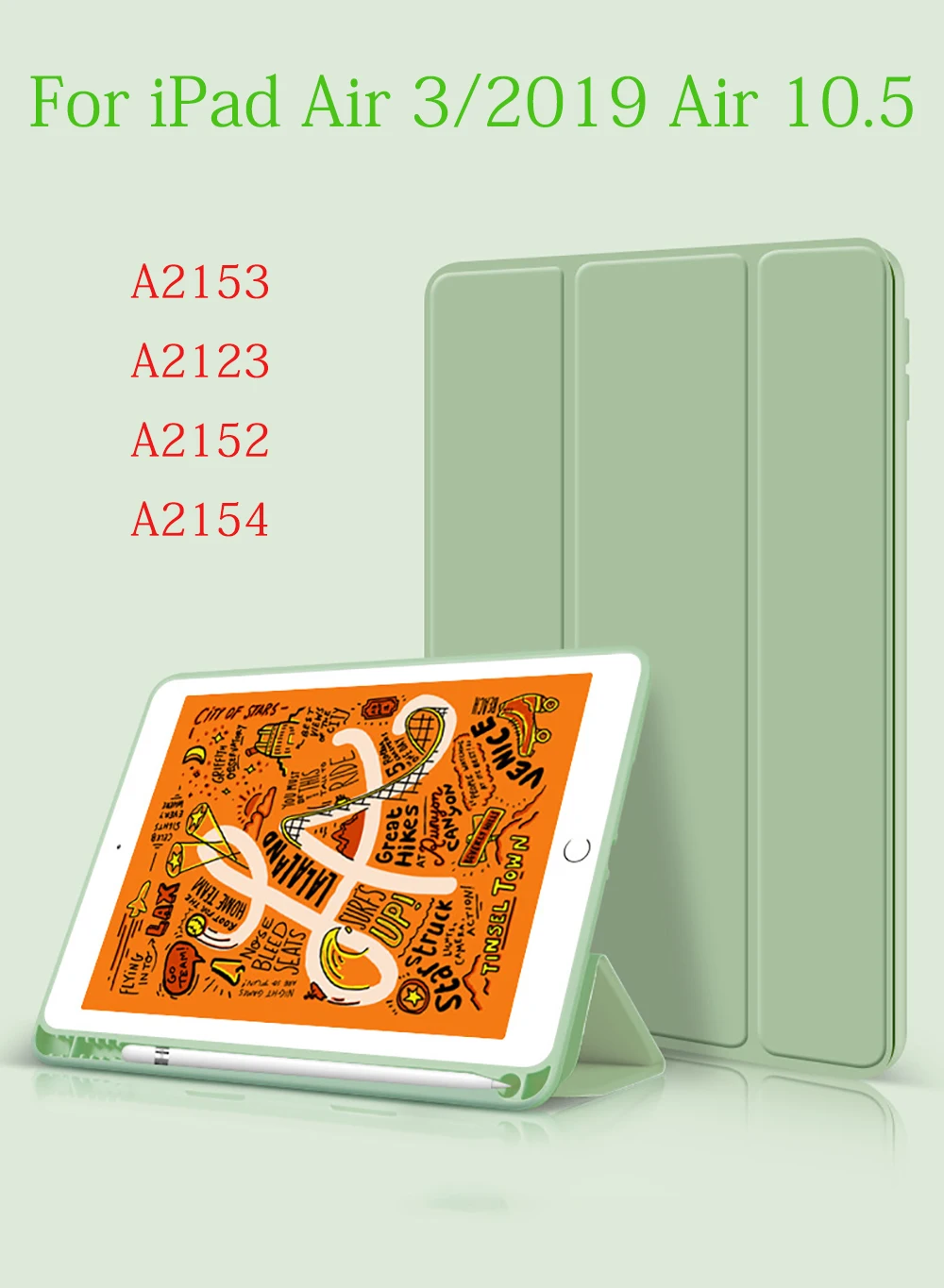 С карандашница таблетки чехол для iPad AIR 3 2019 10,5 дюймов силиконовый мягкий чехол для задней панели смарт-крышка относятся к модели A2153 A2123 A2152