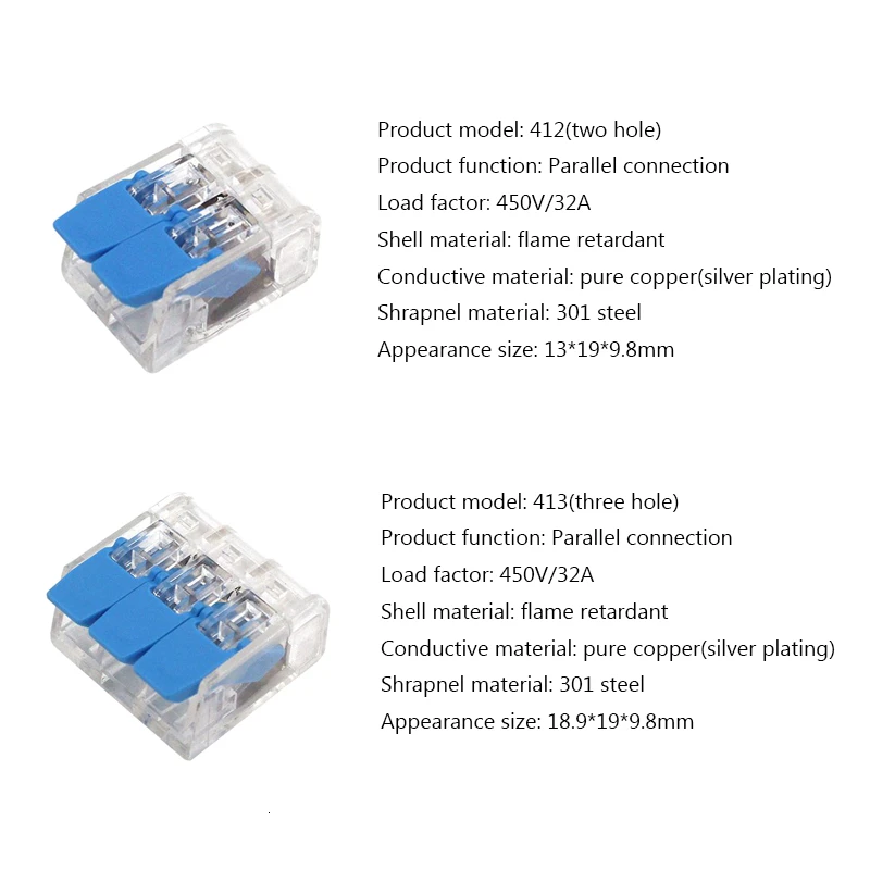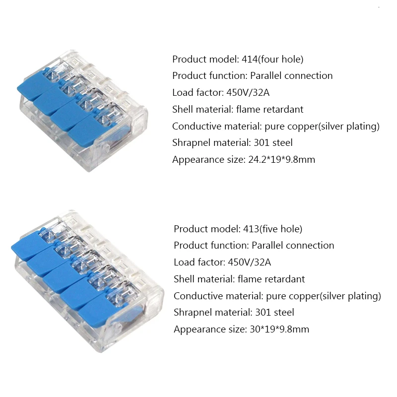 Разъемы для проводов 222-412 413 415 мини-разъемы для проводов, универсальный компактный проводник, вставной клеммный блок, Китай