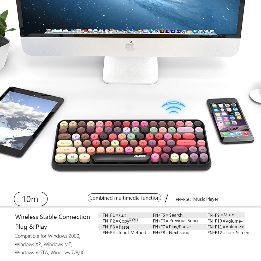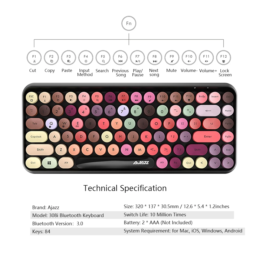 Bluetooth-клавиатура 308i совместима с различными системами и обеспечивает беспроводное стабильное соединение на расстоянии 10 м, очень удобно в использовании. Компактный макет, классический и стильный стиль делает его более различным и неповторимым.