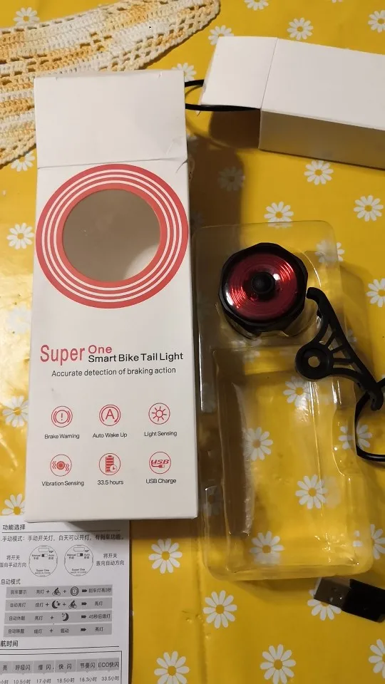 Свет как описано. Вы получаете зарядный кабель. Он имеет одну кнопку для различных модов, stabke, света, мигания и т. Д. Продукт массивный и не выглядит дешево, легко крепится на подседельный штырь велосипеда. Доставка занимает около месяца. Продавец рекомендует!