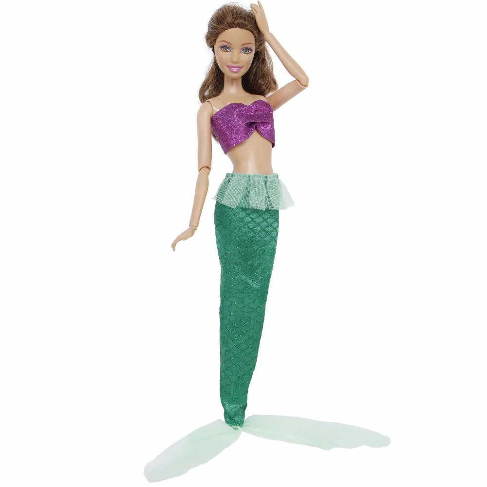 1 комплект, Сказочный наряд ручной работы для косплея, аксессуары для кукол, топ + платье русалки рыбий хвост, классическая одежда принцессы для куклы Барби