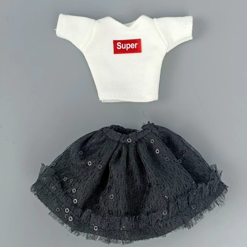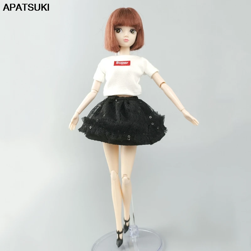 Супер модная кукольная одежда для кукол Барби, наряды, белая футболка и черная юбка для кукол Blythe, одежда, аксессуары для кукол 16