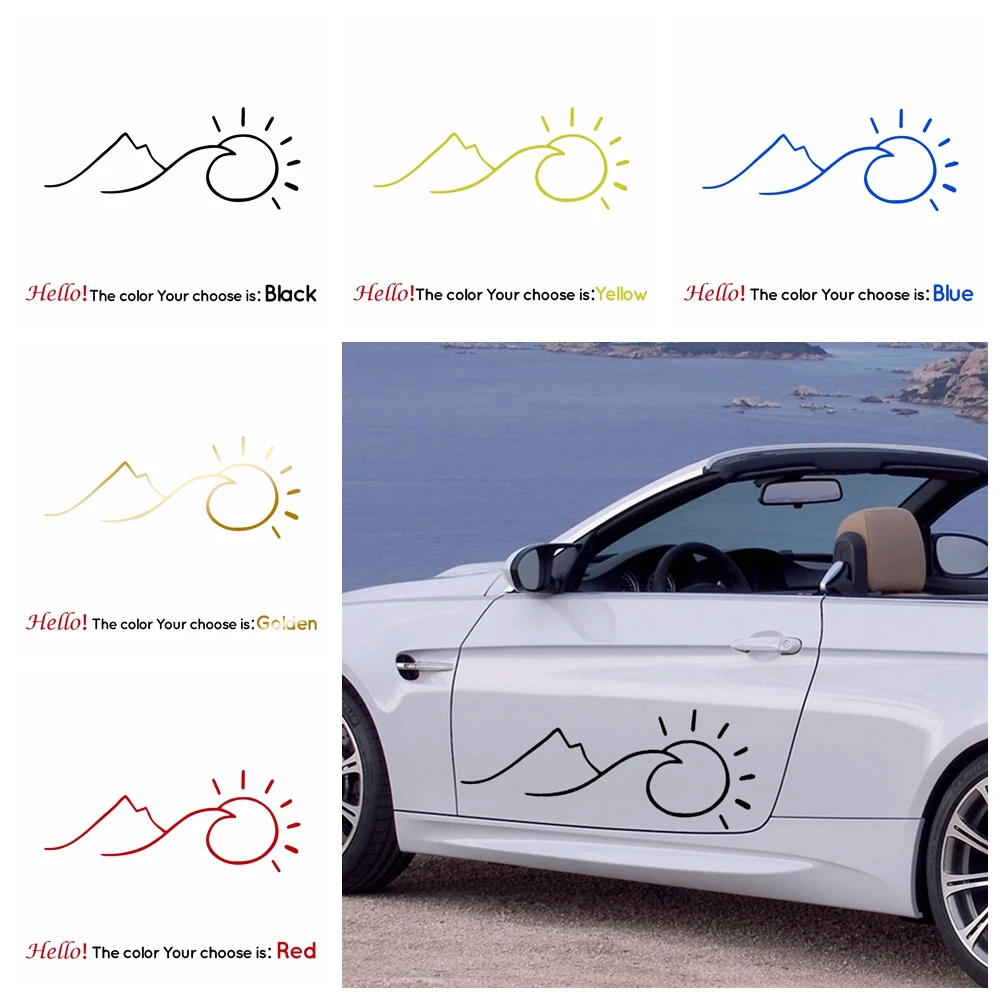 Новый дизайн горы и солнце наклейки на машину забавные красочные солнце наклейки на машину горы Авто Автомобильные отличительные знаки