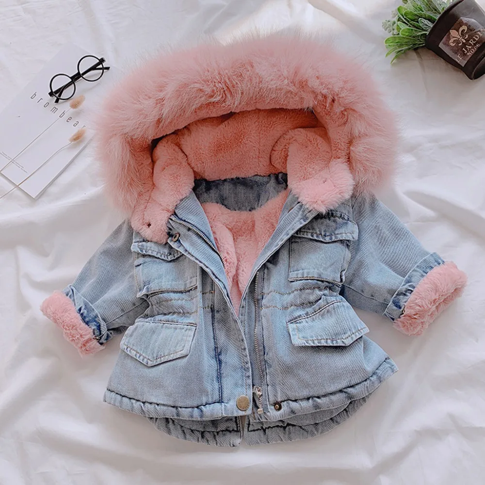 Джинсовая куртка Boutique для маленьких девочек, теплая Вельветовая куртка с натуральным мехом, верхняя одежда для маленьких девочек 4 лет, парка для маленьких девочек, зима 2022