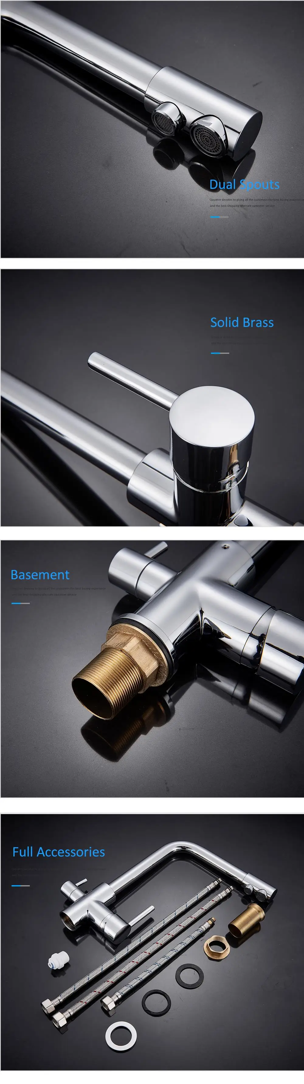 Смеситель кухонный с фильтром, поворот на 360 градусов, две ручки