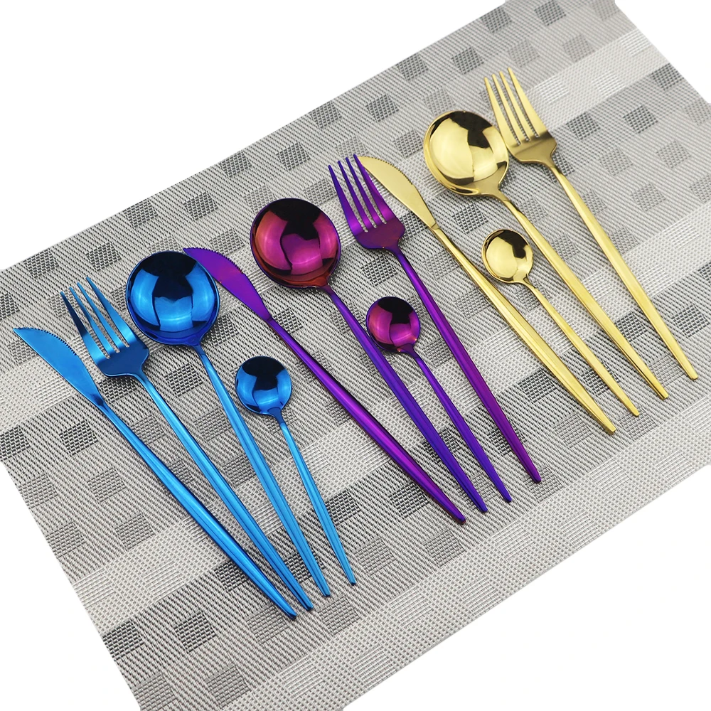 4 шт.компл. набор синей посуды из нержавеющей стали золотые столовые приборы обеденный набор нож вилка ложка столовые приборы набор столовой посуды для кухни