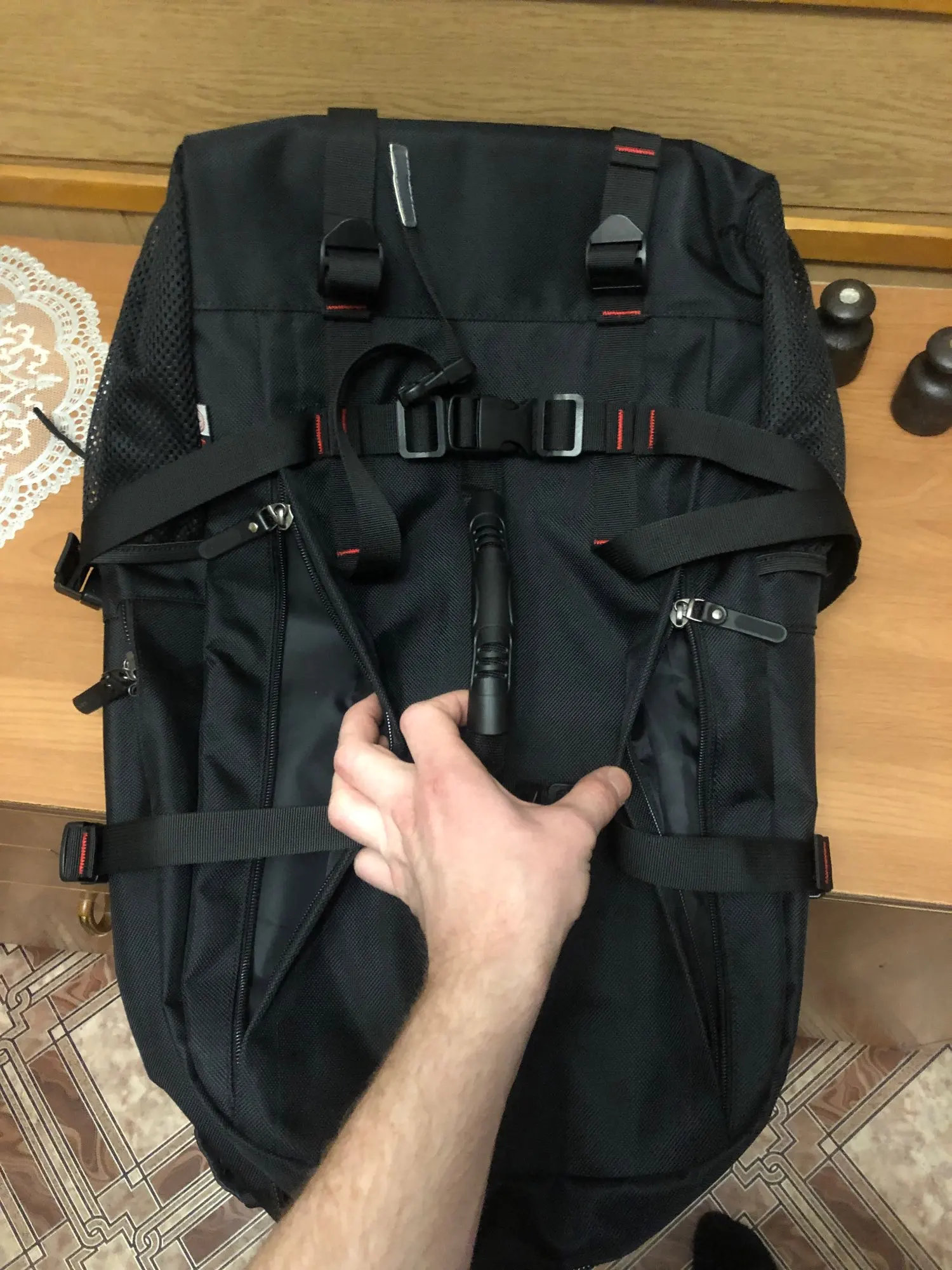 Ну вот и прошло время рассказать о покупке. Нужен был рюкзак для работы. По хорошей погоде добираюсь на веле, руки нужно держать свободными, с собой взять и документы и покушать, да и набор всякой всячены - банку для телефона, ключи фонарик и так далее. На счёт документов, это не права для авто, а папка А4 весьма внушительной толщины. В этот рюкзак влезло всё, даже немного великоват оказался на каждый день. Что понравилось, как сидит на спине, не отвисает а плотно ложится. Есть вставки под плечи и поясницу. Нижний ремень пока убран, это для дальних походов. Там кармашки для мелочевки, туда и убрал свободные концы. Внутри отделение для ноутбука на резиновой застёжке, основное отделение, очень мелкий карман для ручек и карман, тоже не глубокий на молнии. Что глубокое, то два отделения снаружи. Правая и левая молния открывает каждый свое отделение, они раздельные. Хорошо, что не хорошо, что если застегнут боковой ремень, до дна отделения не достать, надо его расстегнуть.