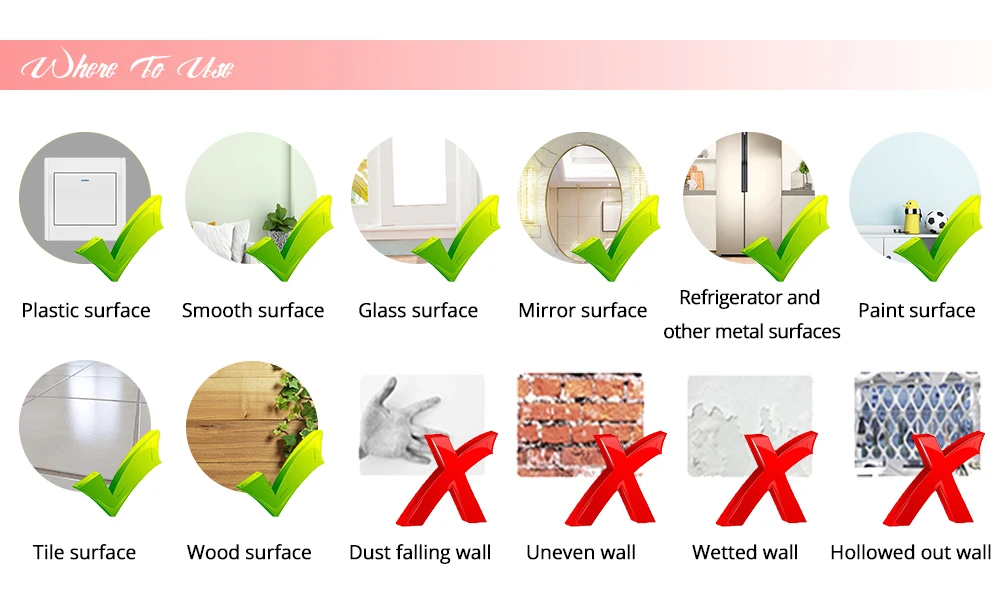 Where to applySmooth wall glass metal wood etc