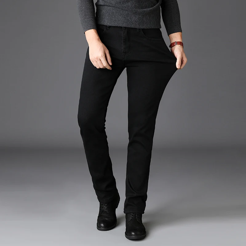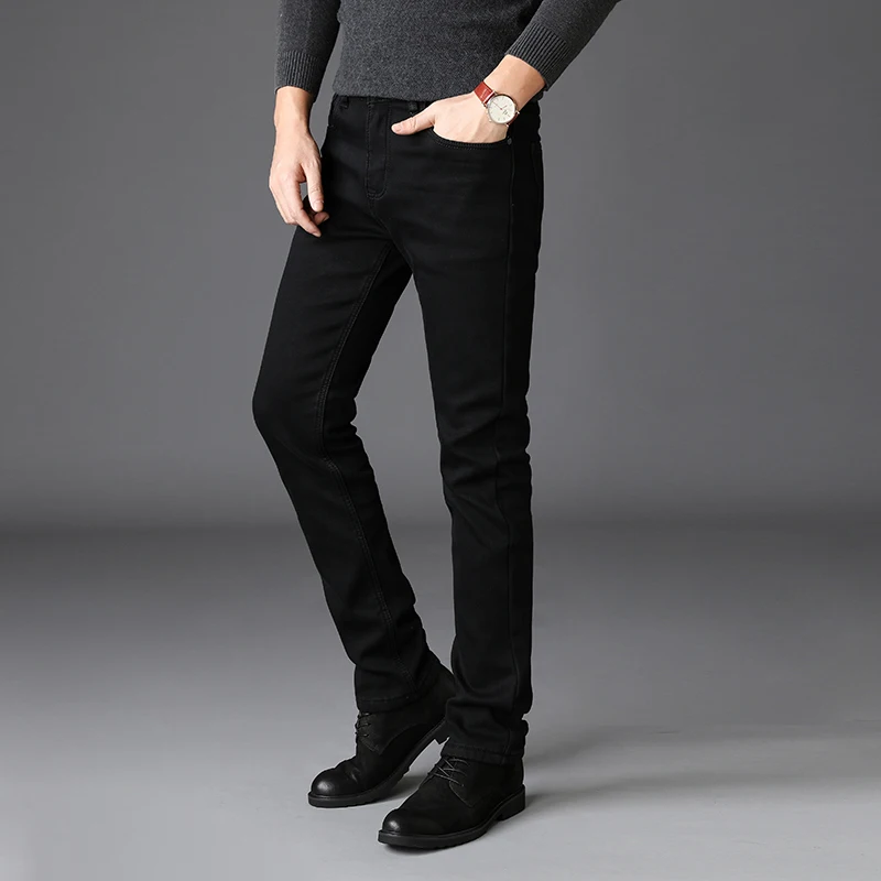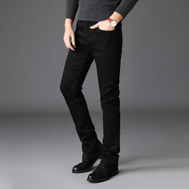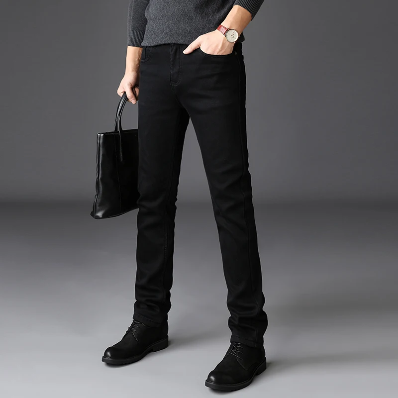 Джинсы мужские облегающие, модные Стрейчевые брюки из денима в классическом деловом стиле, повседневные штаны черного и синего цвета