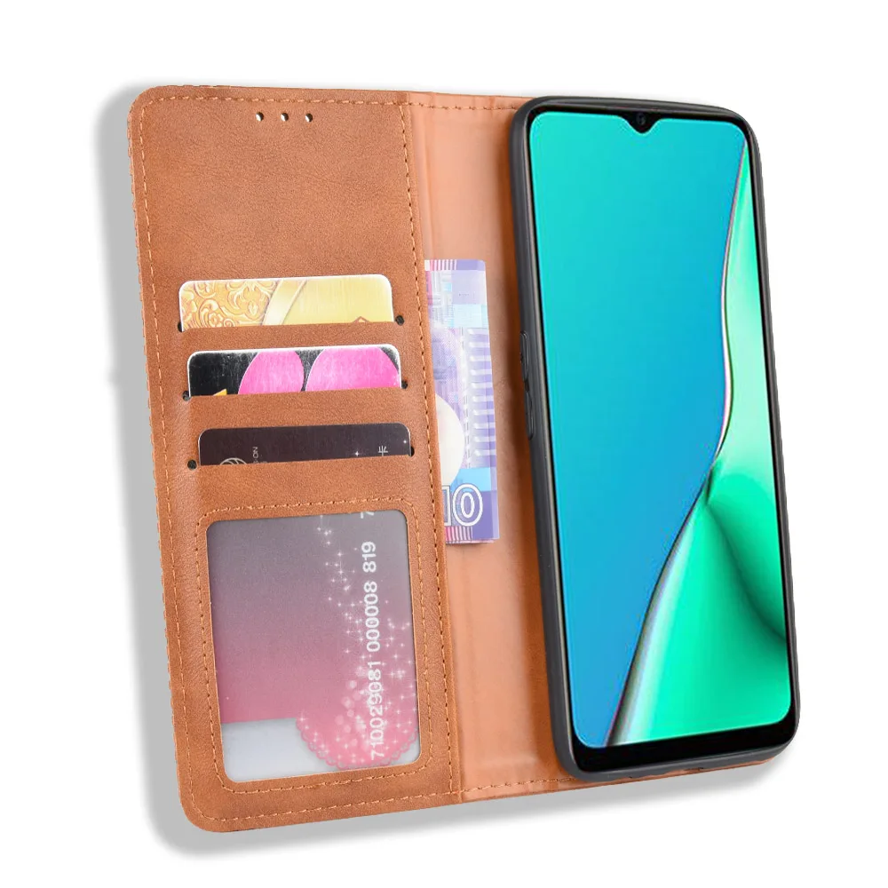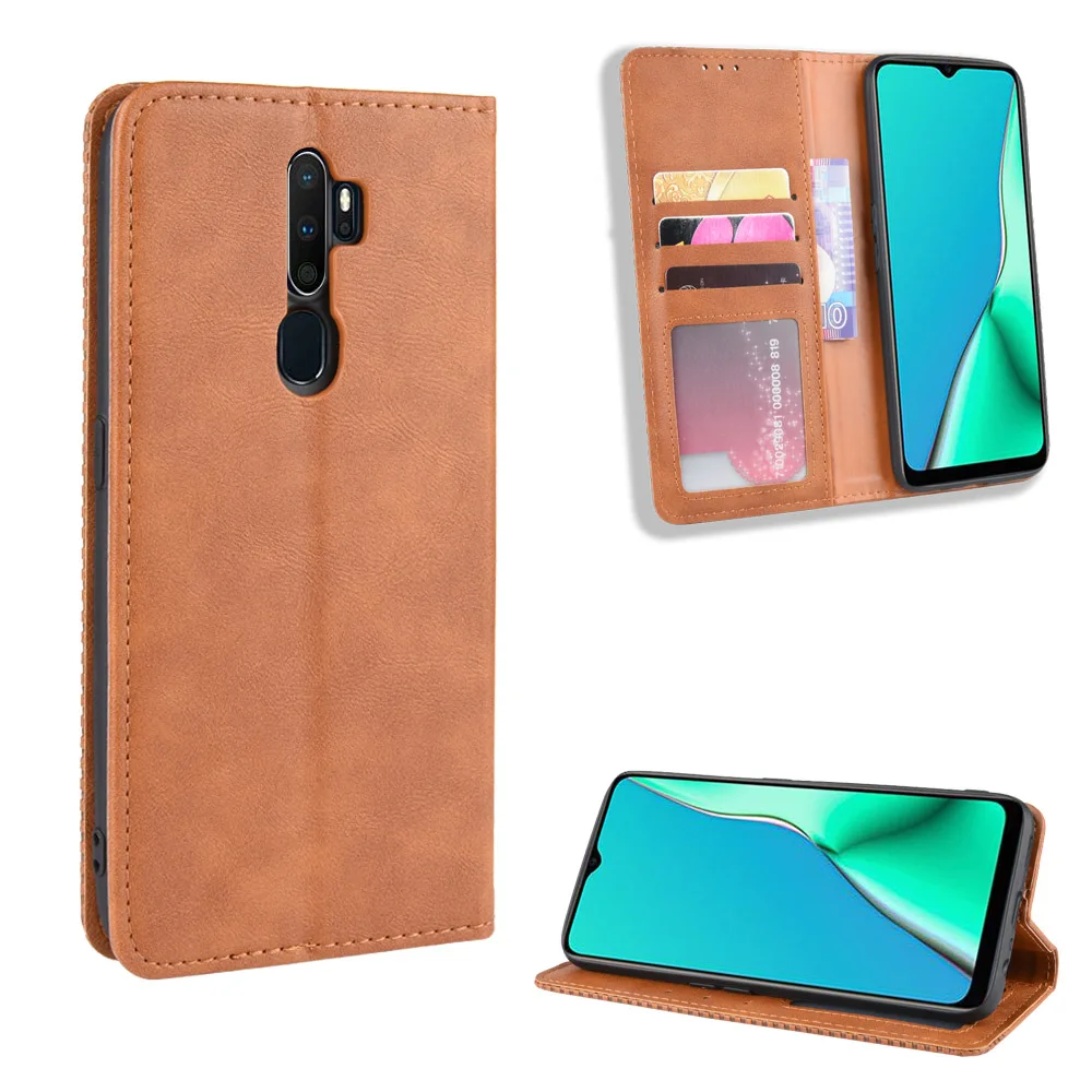 Чехол-книжка для OPPO A53 A32 2020, тонкий винтажный кожаный чехол...