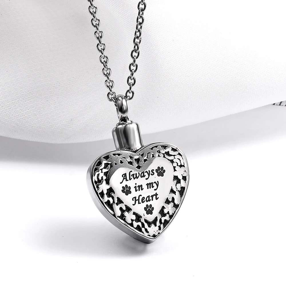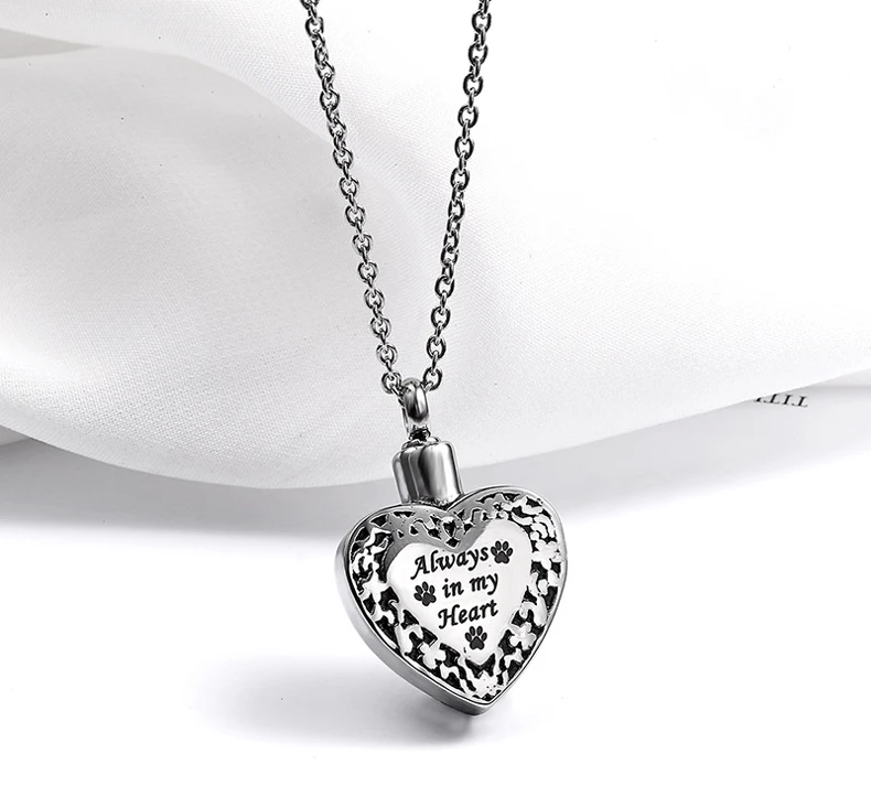 Кулон в форме сердца с принтом лап пепел всегда в моем сердце гравировка питомца кремации пепельница из нержавеющей стали эфирное масло ожерелье