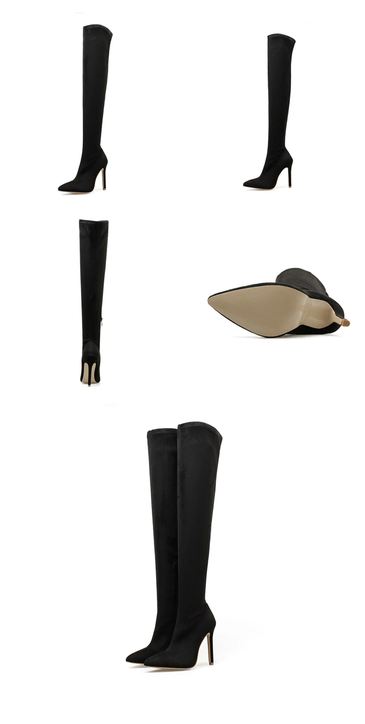 Eilykenчерные облегающие высокие сапоги модные женские ботфорты на молнии на тонком высоком каблуке с острым носком обувь размера плюс 35-42