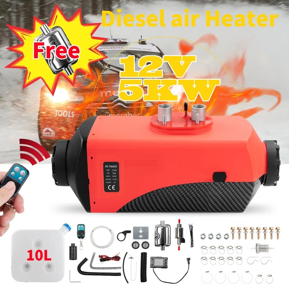 10 л, 5000 Вт, автомобильный обогреватель, стояночный отопитель, воздушный дизельный Обогреватель с ЖК-дисплеем, 5 кВт, 12 В, плоский воздушный Дизельный подогреватель для грузовиков, кемперов, фургонов, лодок, автобусов