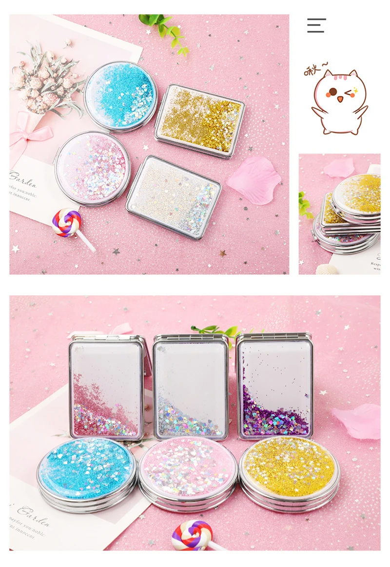 1 шт. блестящее зеркало для макияжа с зыбучим песком милое двухстор...