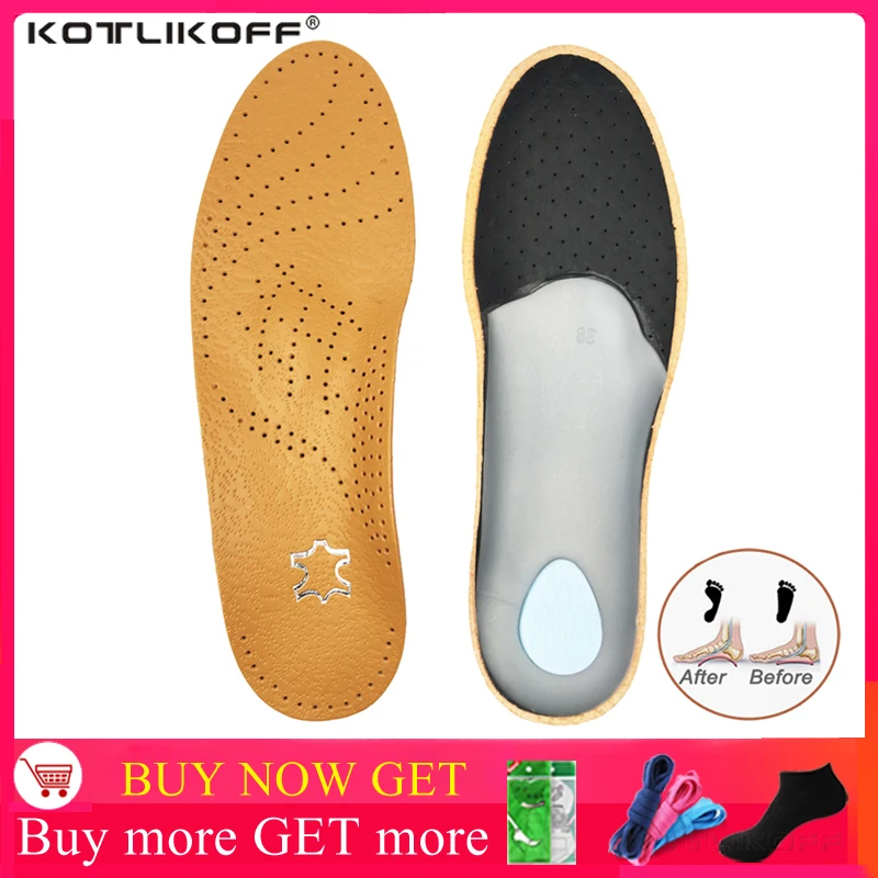 Кожаные ортопедические стельки KOTLIKOFF для обуви, ортопедические стельки на плоской подошве, стельки для обуви для мужчин и женщин